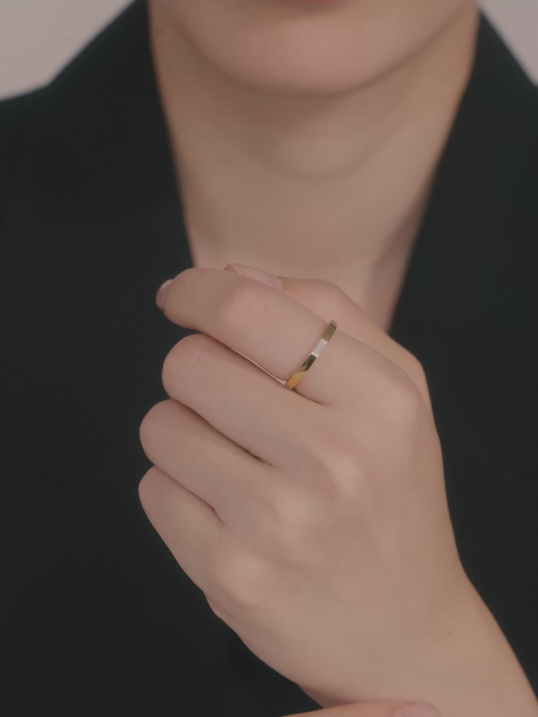 バゲットカット特有の透明感ある輝きが、構築的なフォルムの中で際立ち、指先に洗練された印象をもたらします。直線的で潔いモダンなデザインは、凛とした緊張感と、意志の強さを表現します。