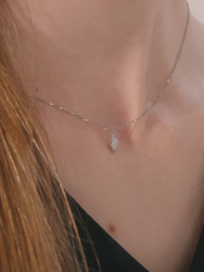 やわらかな流れを描くマーキスカットを、光を包み込むようにあしらったひと粒ネックレス。