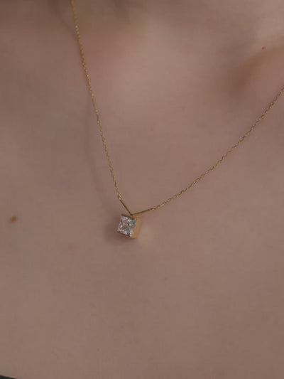 力強い輝きを放つプリンセスカットをあしらったネックレス。