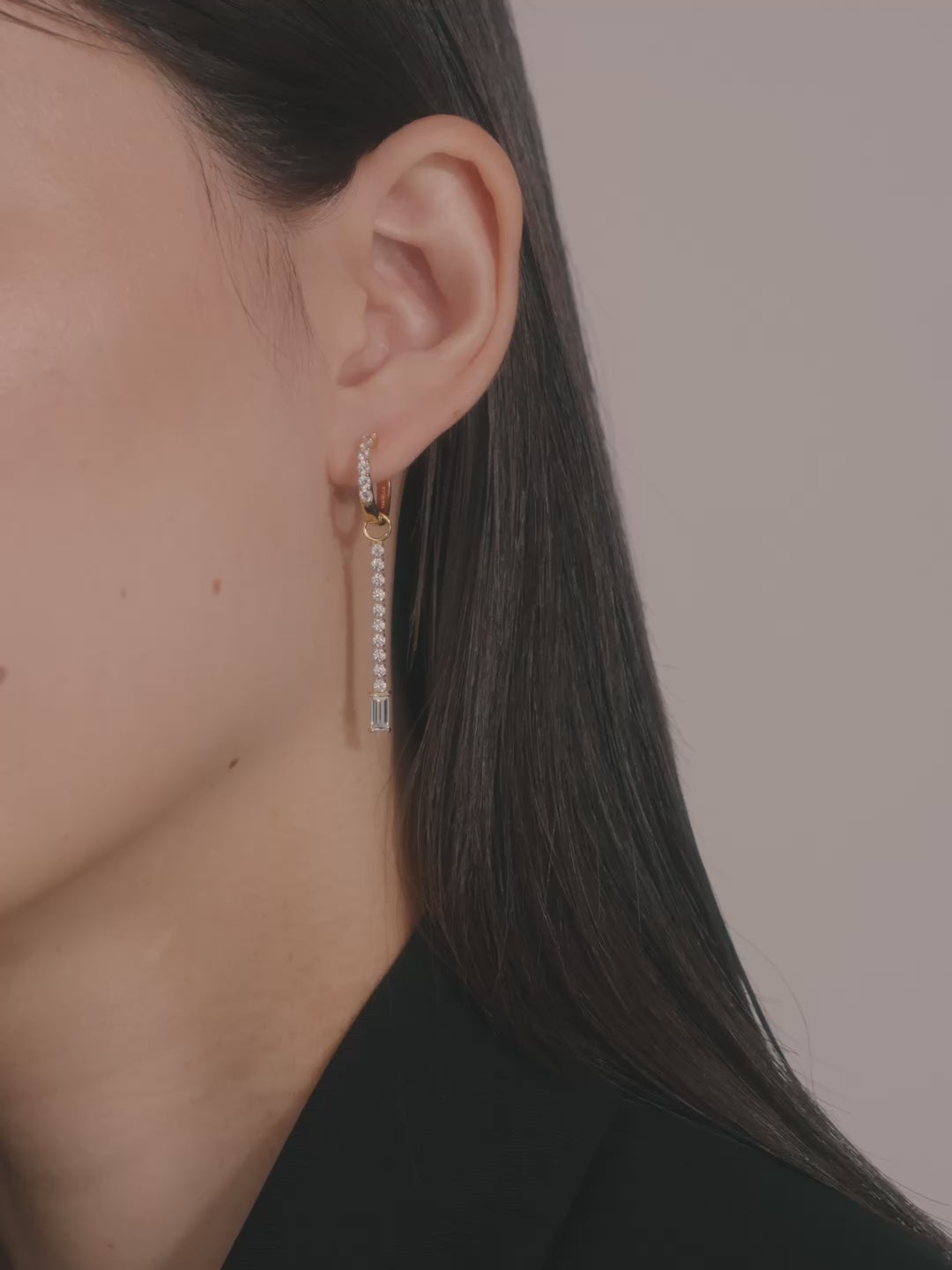 フープピアスだけの状態では、どんなシーンにも合わせられる、使い勝手の良いデザインに。2通りの印象の違いを楽しむことができます。