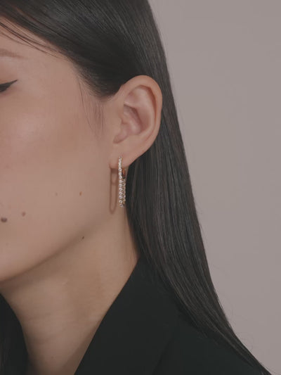 しなやかに流れる「Silk chain」が、耳もとで柔らかなカーブを描くフープピアス。