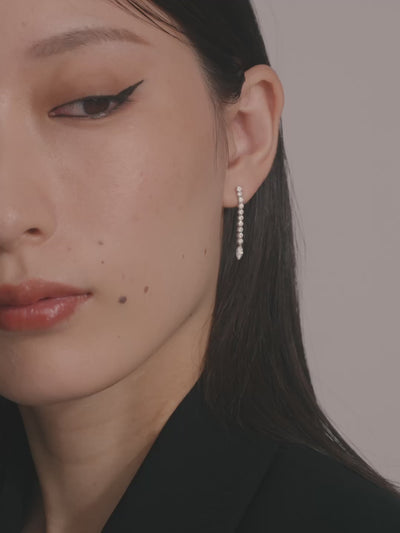 縦に流れるフォルムは顔まわりをすっきりと見せ、動きに合わせて揺れるチェーンは細やかなきらめきで見る人を魅了します。