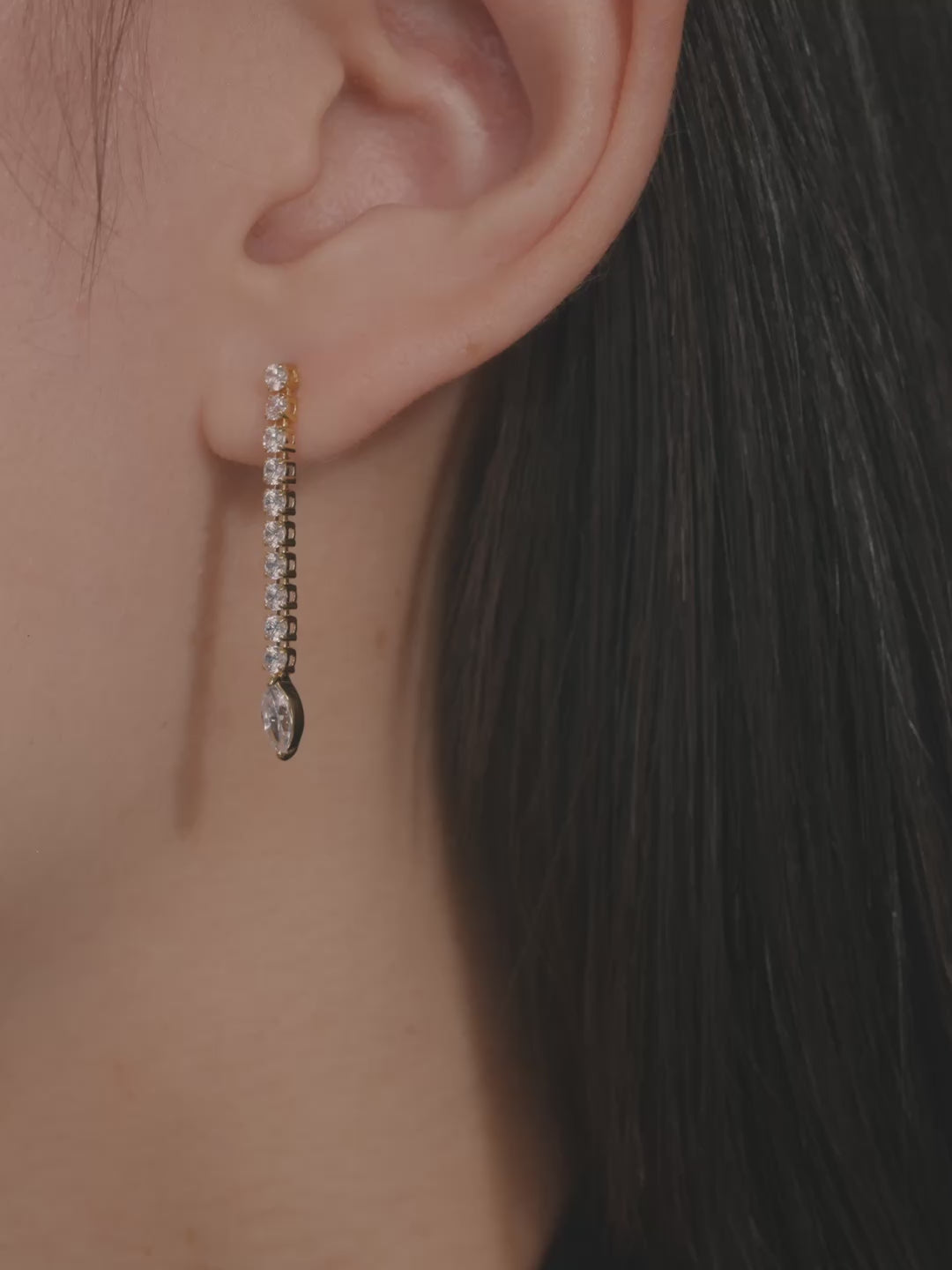 絹のように滑らかな「Silk chain」の流れに、一粒ながら優雅に光を放つマーキスカットをあしらったラインピアス。